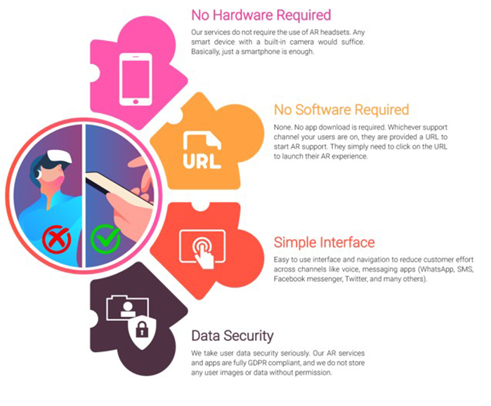 Our services do not require the use of AR headsets. Any smart device with a built-in camera would suffice. Basically just a smartphone is enough.