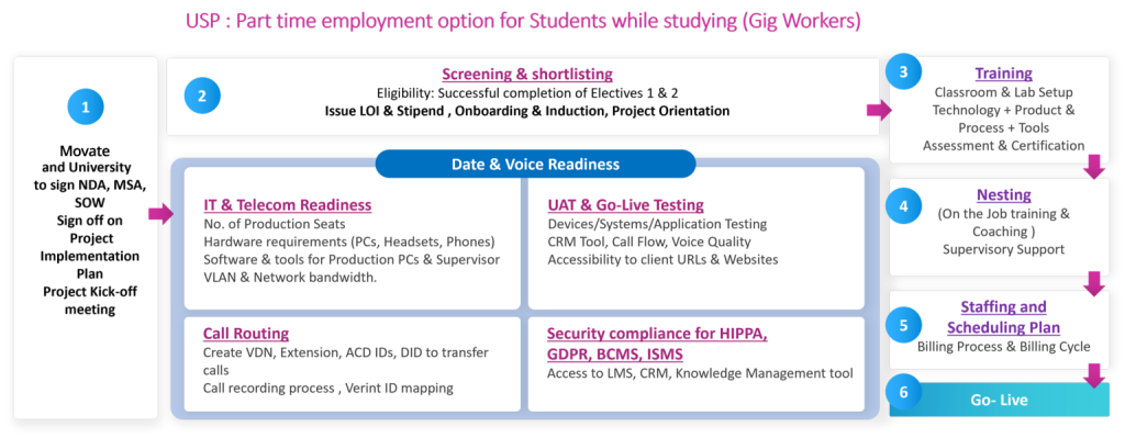 C2C is a nationwide initiative that aims to bridge the gap between Academia and Industry. Movate’s partnership with the academy aims to achieve exactly that by working hand-in-hand with the student placement officers, head of departments, deans and teaching faculty. An initiative that’s a win-win for all stakeholders in the academia. There’s no greater delight than seeing students make it through.