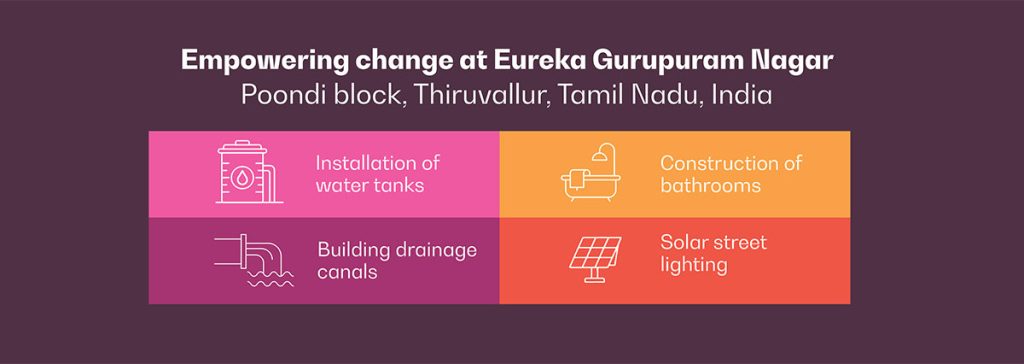 Movate’s engagement in Eureka Gurupuram stands as a shining example of how targeted, thoughtful interventions can drive sustainable change in vulnerable communities. Each initiative right from ensuring access to water and sanitation to enhancing safety and resilience against floods reflects the desire and drive for lasting social impact.